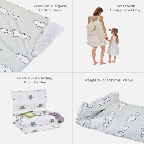 Plastic-free kids travel beds with organic bamboo sleeping bags