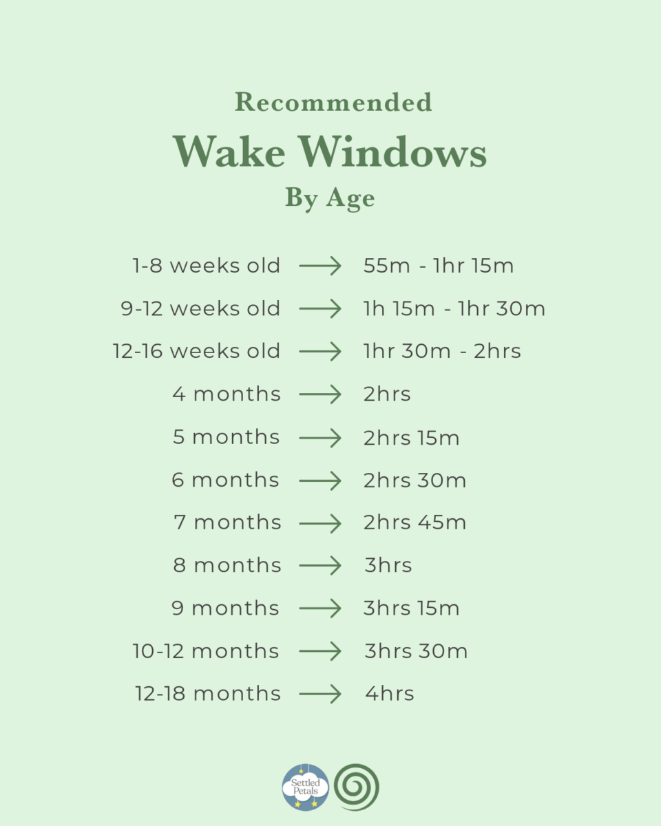 Although individual sleep cues should be followed to ensure the schedule works for a particular child, based on my experience these are usually the maximum wake windows per age: