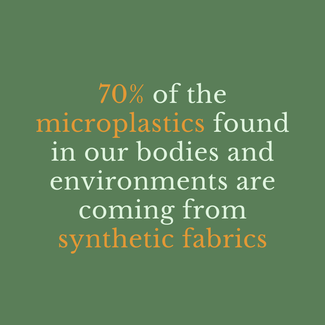 Some studies suggest that around 70% of the microplastics found in our bodies and environments are coming from synthetic fabrics. And in my view, synthetic fabrics are almost entirely replaceable. They are often totally unnecessary and there are many biodegradable alternatives.