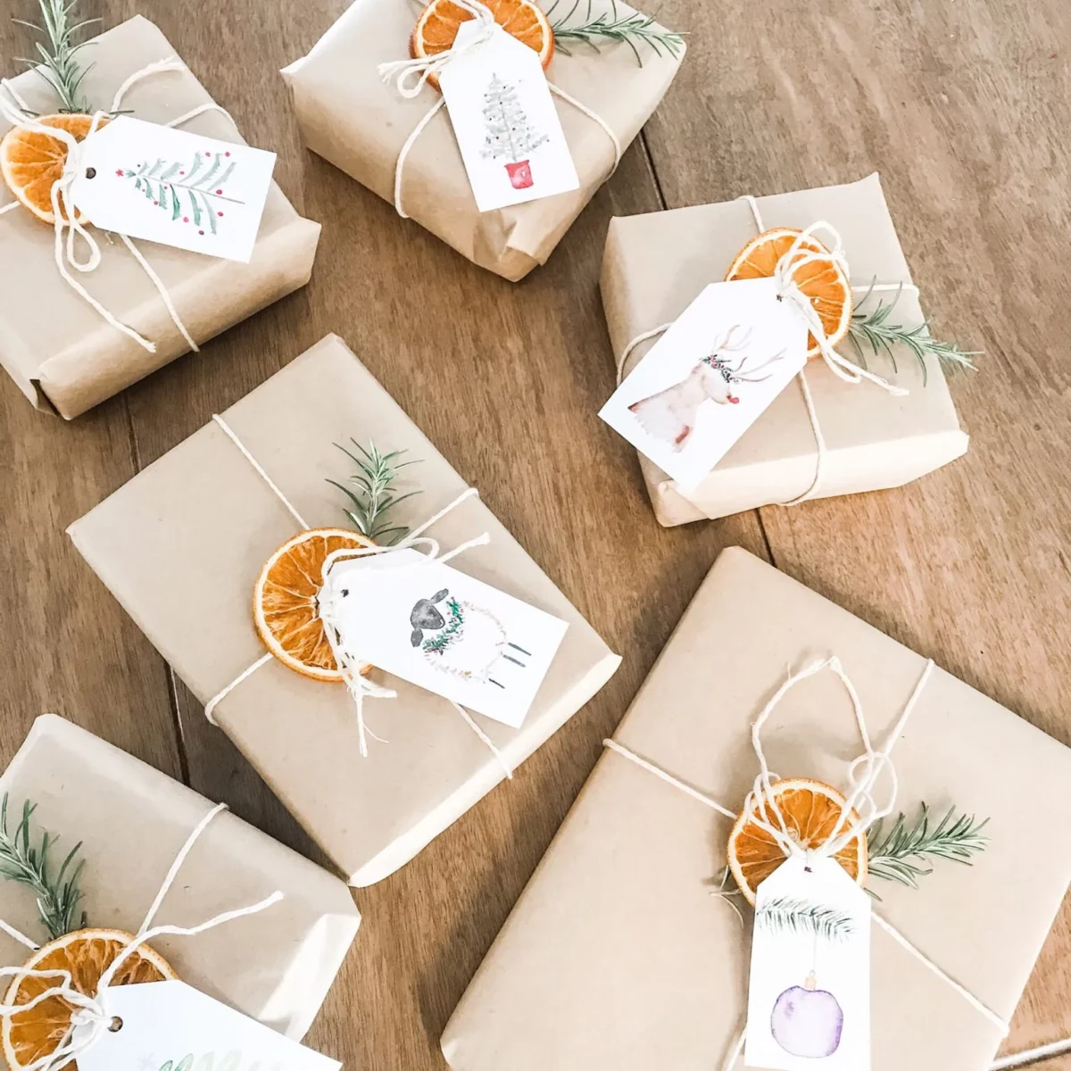 Wrapping paper is one of the huge (and largely unnecessary) wasted resources at Christmas. Here’s our favourite hack: packages and deliveries often get padded out with brown paper…. so save this paper for your wrapping! It might be a bit creased but just smooth it down a bit, wrap your gifts and top if off with a pretty decoration. It really can look lovely while also giving a beautiful, rustic, sustainable feel too. If you’re not sold on that idea, buy a roll of recycled craft paper instead and give it a Christmas feel with some festive, natural decorations. Try these dried orange slices, the kids will love making them. And swap out sellotape for biodegradable brown packing tape – it looks nicer with the brown paper anyway. If you prefer more traditional wrapping paper check out Happy Wrap for sustainable patterned wrapping paper options.