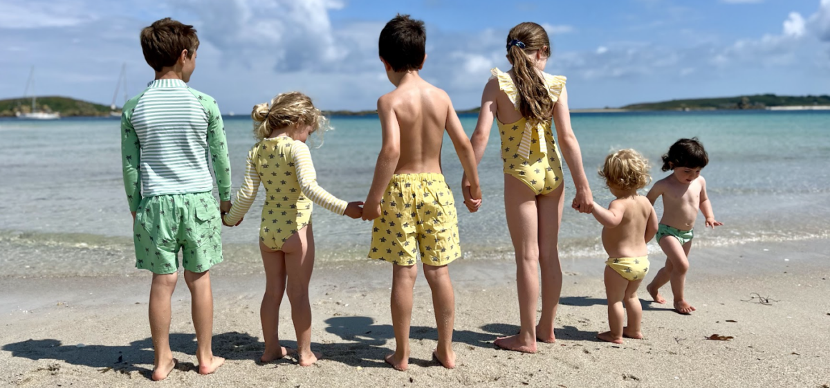 Let’s talk about the typical approach to sun safety: chemical suncreams or synthetic swimwear coated in toxic sun blockers, made with microplastic-shedding fabrics. These aren’t just harmful to the environment, they are absorbed directly into our little ones’ bloodstreams and can be damaging to children’s sensitive skin too.