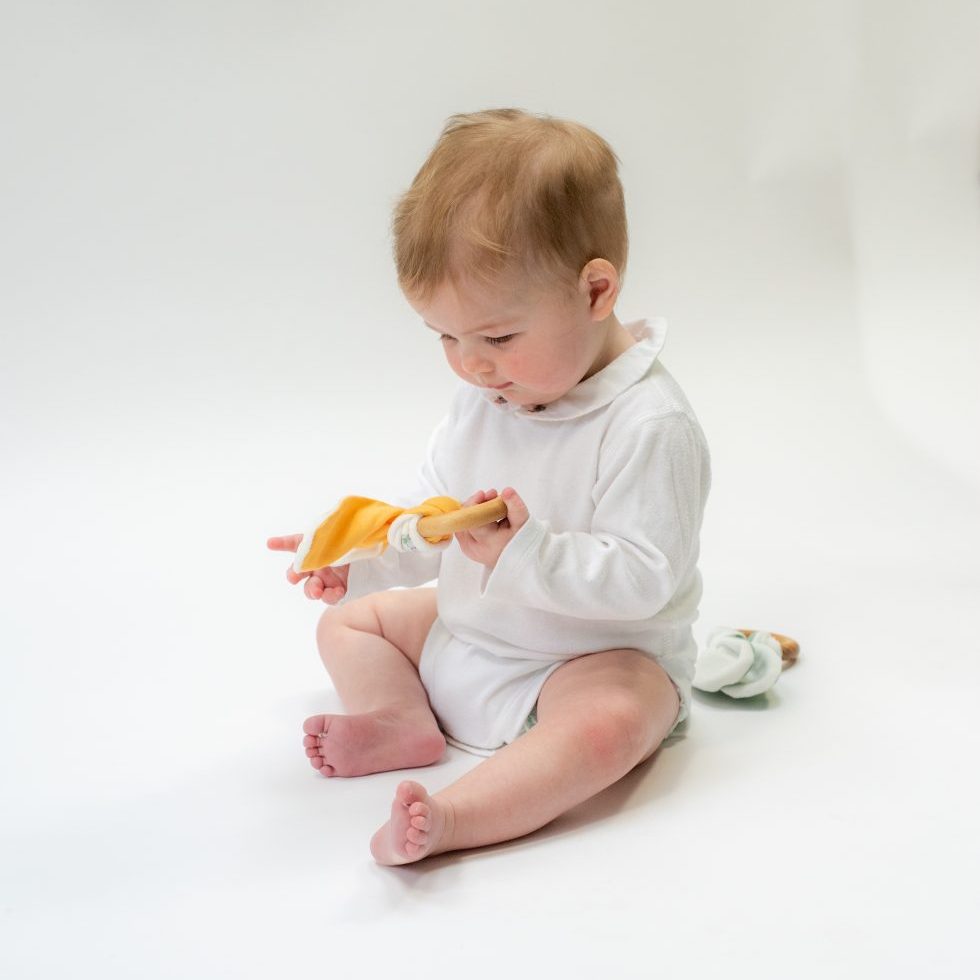 - Natural maplewood teething ring brushed with organic coconut oil